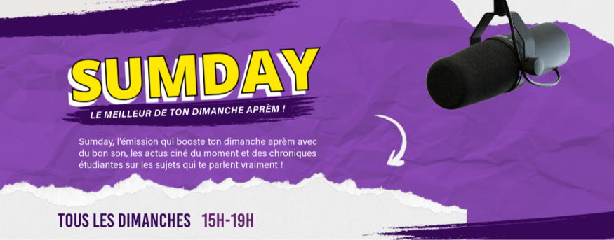 SUMDAY, l’émission qui booste ton dimanche aprèm avec du bon son, les actus ciné du moment et des chroniques étudiantes sur les sujets qui te parlent vraiment !